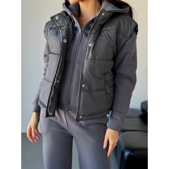 Базовий костюм, зіпка з капюшоном+широкі штани та тепленька жилетка в колір костюму.