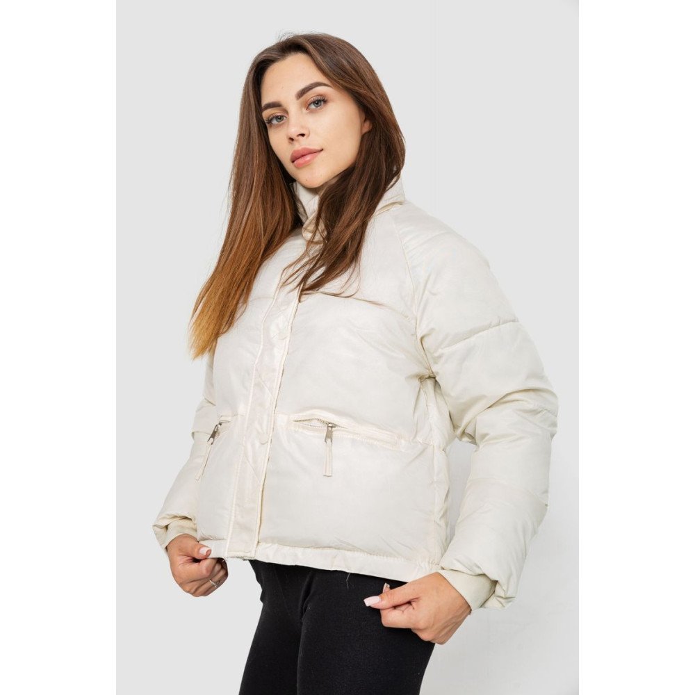 Куртка жіноча демісезонна, колір молочний. Куртска коротка з довгими рукавами на блискавці і кнопками.