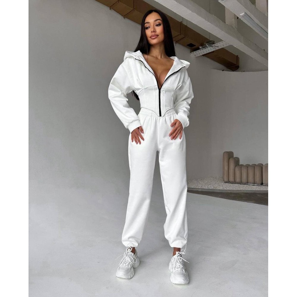 Найкрутіший костюм Ever! Неймовірно крута тканина - замш на дайвінгу. Кофта з ефектом корсету, дуже гарно підкреслює талію, з капюшоном, на блискавці. Штани вільні, манжети на резинці.