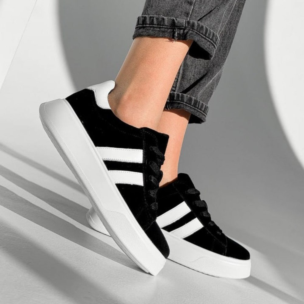 Кросівки жіночі Ads чорні + білий, натуральна замша